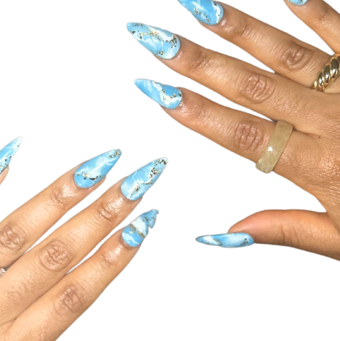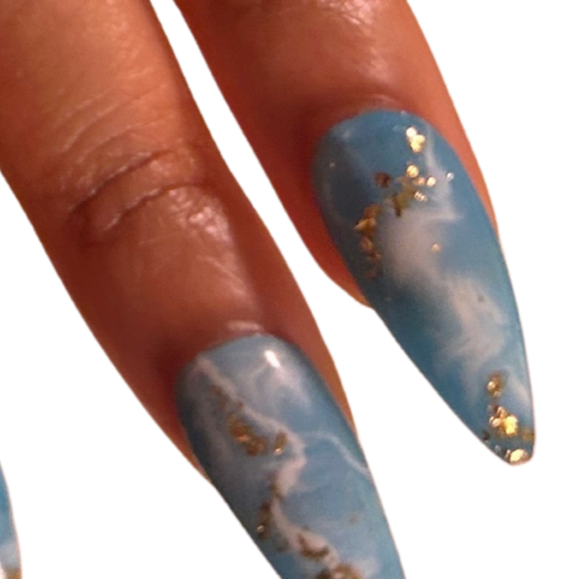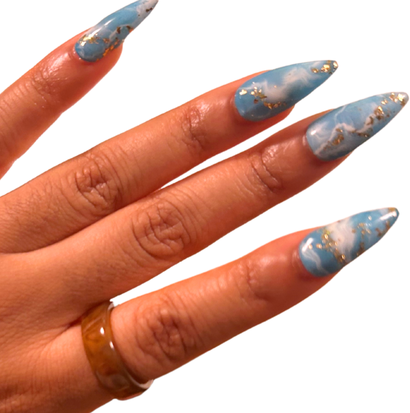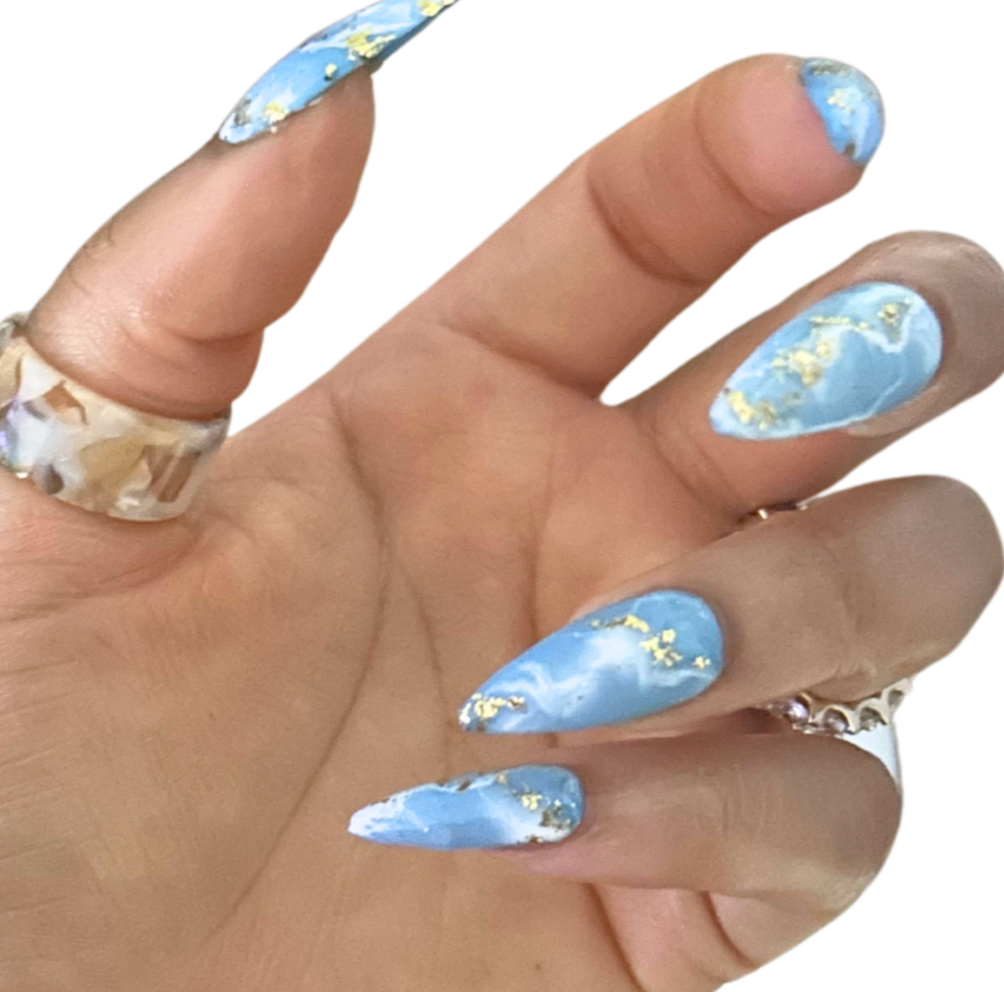 Blue base with white marbling and gold foil detailing.