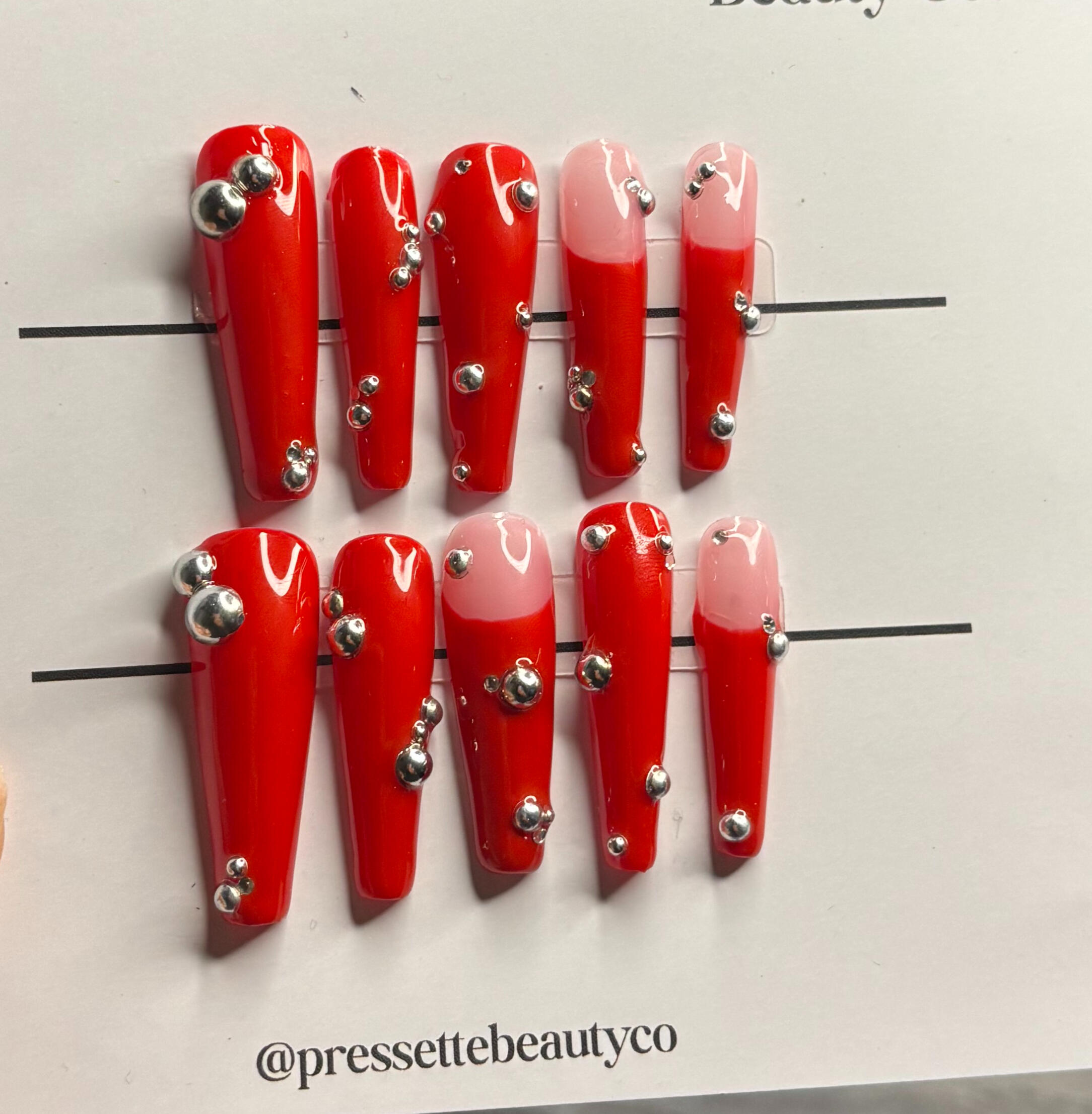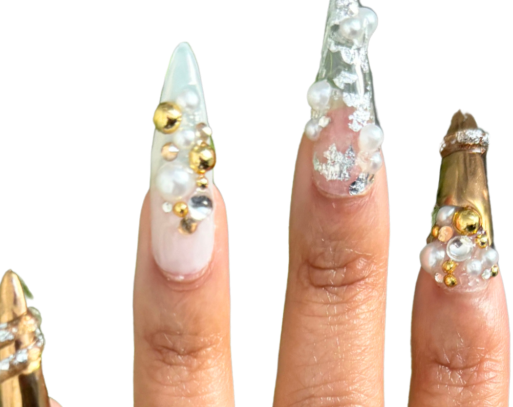 Available in any shape or length. Note that variations with pearl detail will occur with different shapes and lengths.