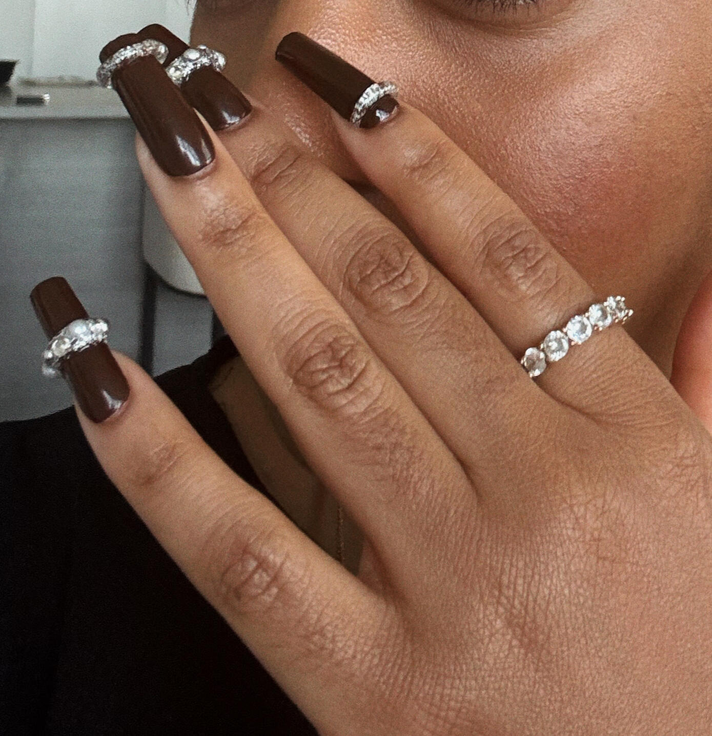 Deep, glossy espresso brown with a glass-like shine that reads effortless and expensive. This rich neutral complements every skin tone and transitions seamlessly from day to night.